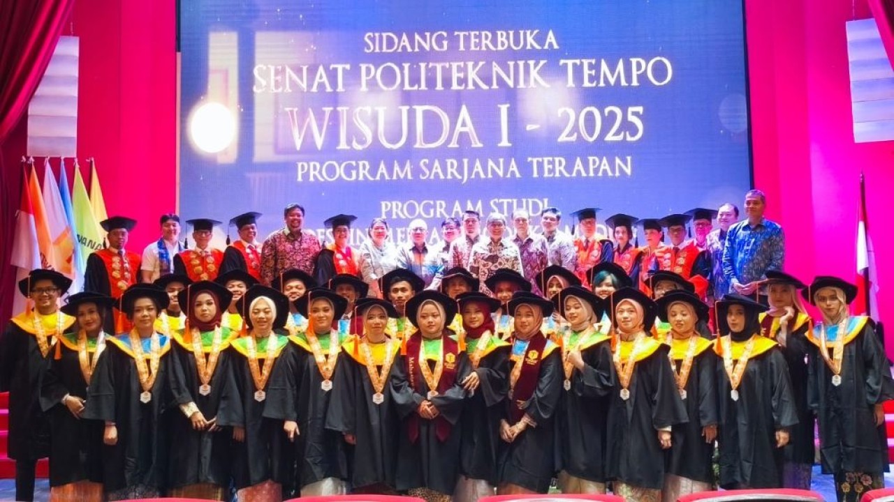 Nusantaratv.com - Politeknik Tempo menggelar wisuda perdana Sarjana Terapan pada Sabtu, 12 Juli 2025, di Auditorium Perpustakaan Nasional RI, Jakarta Pusat. Sebanyak 26 mahasiswa dari Program Studi Produksi Media, Desain Media, dan Manajemen Pemasaran Internasional, dikukuhkan sebagai lulusan pertama yang siap memasuki dunia kerja.