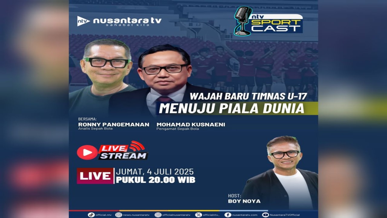 Berikut rundown NTV Sportcast Nusantara TV edisi Jumat (4/7/2025) bertajuk "Wajah Baru Timnas U-17 Menuju Piala Dunia":