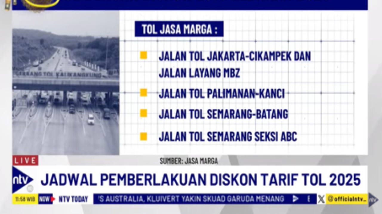Seperti diberitkan Nusantara TV dalam program NTV Today, potongan tarif tol ini diberikan kepada semua golongan kendaraan untuk perjalanan dari Jakarta menuju Semarang, Jawa Tengah dan sebaliknya pada periode arus mudik dan balik Idul Fitri 2025.