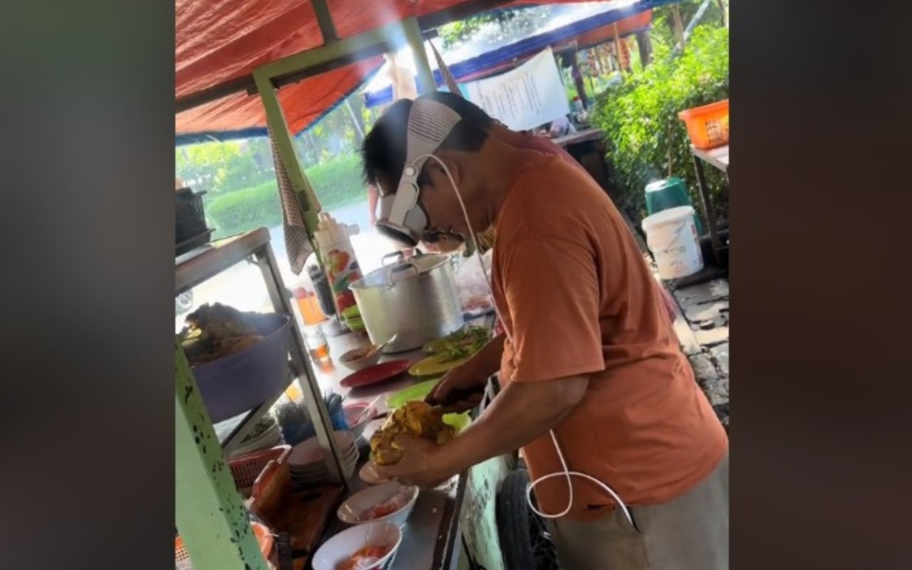 Sebuah video viral diunggah oleh akun TikTok (@yohanesauriflux) pada Selasa (20/2/2024), menampilkan tukang soto menggunakan Apple Pro Vision saat sedang membuat pesanan.