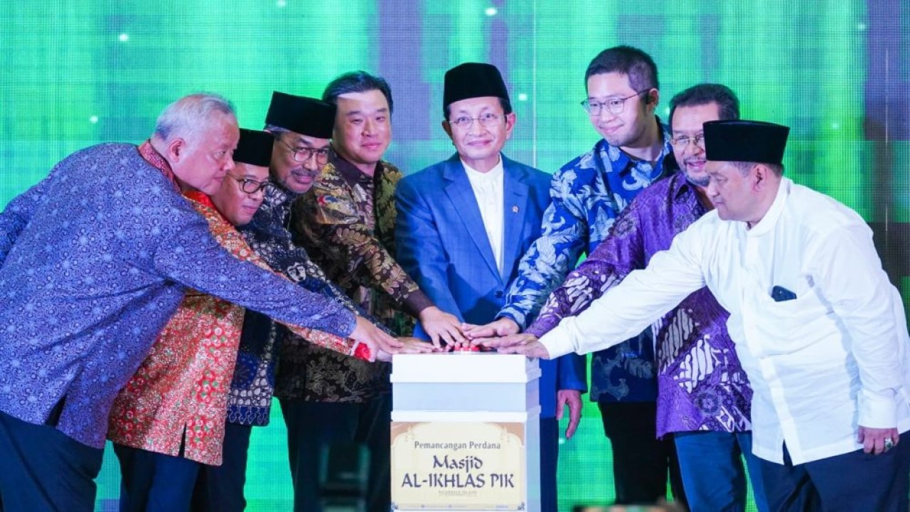 Menag Nasaruddin Umar meresmikan pemancangan perdana Masjid Al Ikhlas di kawasan Pantai Indah Kapuk (PIK) 2, Jakarta Utara, pada Jumat, (7/3/2025). (Foto: Istimewa/Kemenag)