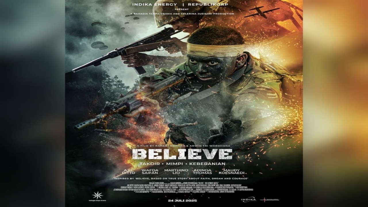 Nusantaratv.com-Tahun ini, perfilman nasional akan mencatat tonggak sejarah baru melalui film laga epik berjudul "BELIEVE: Takdir, Mimpi, dan Keberanian". Diangkat dari kisah nyata dalam buku biografi Believe–Faith, Dream, and Courage, film ini menyatukan semangat patriotisme, pengorbanan, keimanan, dan keberanian dalam satu sajian sinematik yang menggugah.