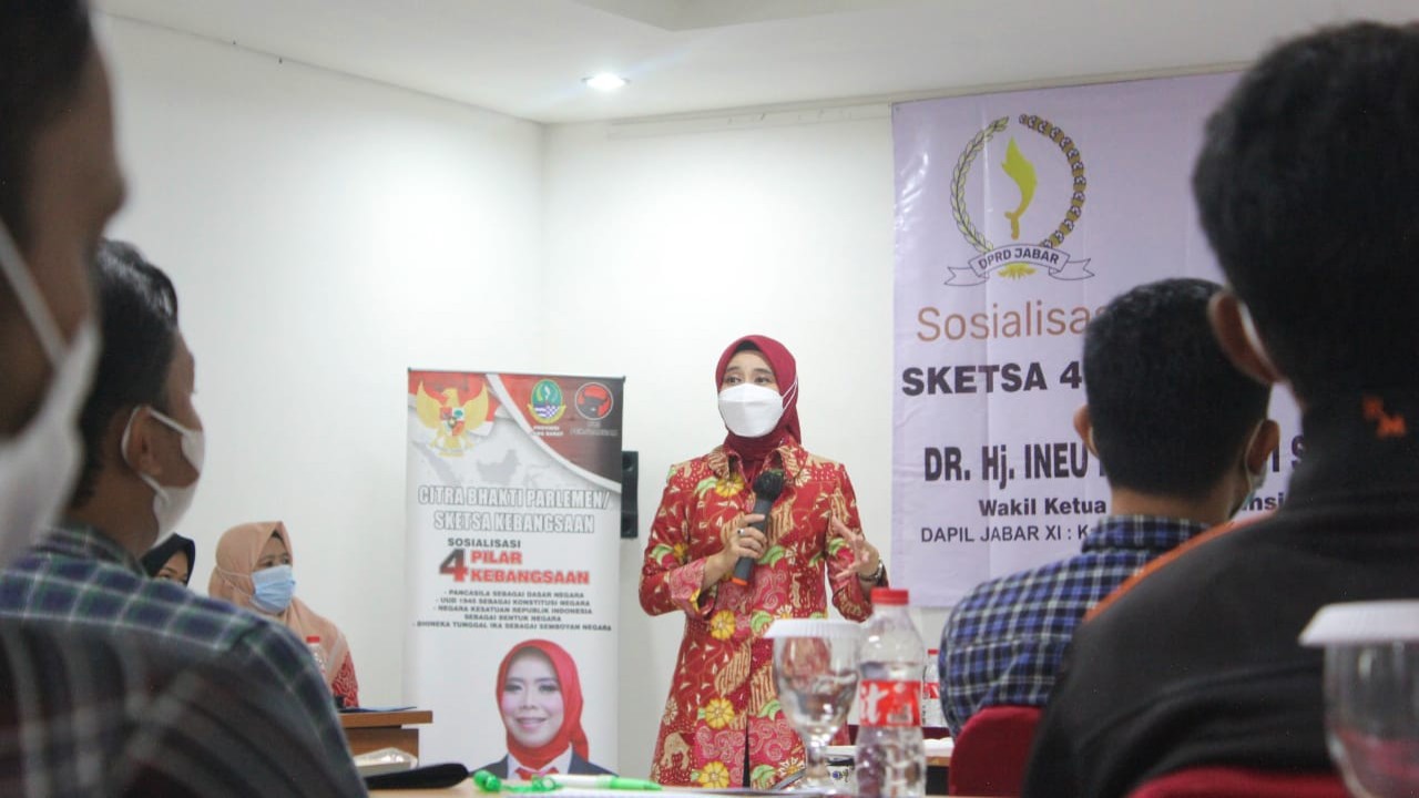 Nusantaratv.com - Wakil Ketua DPRD Provinsi Jawa Barat, Ineu Purwadewi Sundari meminta generasi milenial menjadi motor untuk menyosialisasikan empat pilar kebangsaan. Sebab, di era globalisasi dan maraknya budaya luar yang masuk harus diimbangi dengan penguatan wawasan kebangsaan.