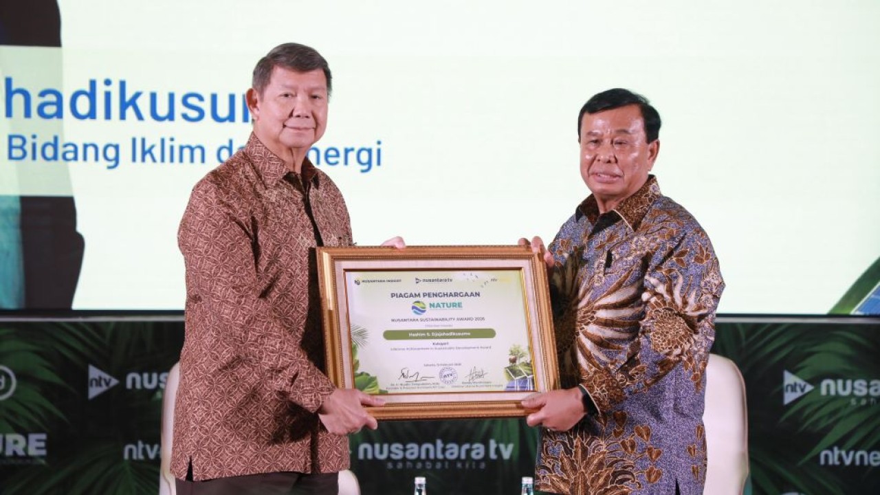 Hashim Djojohadikusumo menerima penghargaan NATURE Award 2026 yang diserahkan langsung oleh Presiden Komisaris NT Corp dan Nurdin Tampubolon