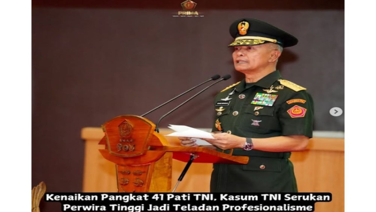 Kenaikan pangkat 41 Pati TNI tersebut berdasarkan Surat Perintah Panglima TNI Nomor Sprin/526/III/2025 tanggal 17 Maret 2025 dengan rincian 20 Pati TNI AD, 14 Pati TNI AL dan 7 Pati TNI AU.