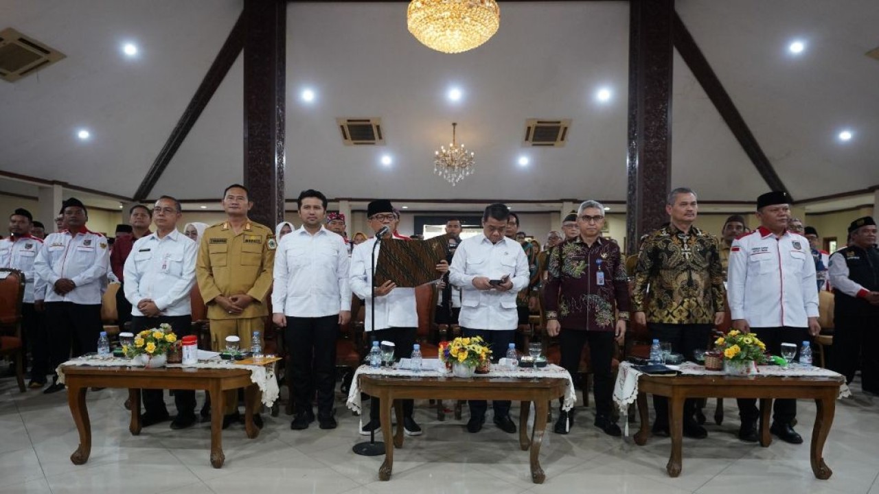 Mendes PDT Yandri Susanto menghadiri Saba Desa sekaligus pelantikan APDESI Merah Putih Provinsi Jawa Timur di Pendopo Lokatantra Kabupaten Lamongan, Senin, 22 Desember 2025. (Foto: Istimewa)