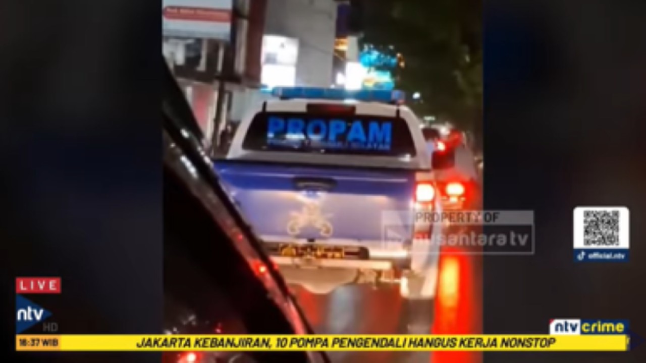 "Nih mobil Propam nabrak orang habis itu lari," kata seseorang dalam rekaman video yang beredar di media sosial.