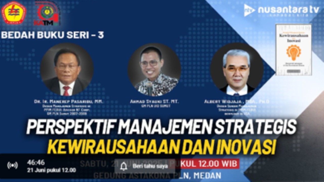 Nusantaratv.com-Acara Bedah Buku Kompas: Perspektif Manajemen Strategis Kewirausahaan & Inovasi akan diselenggarakan hari ini, Sabtu 21 Juni 2025 di Kantor PLN Wilayah Sumatera Utara, Gedung Astakona Lt. 4** Jl. KL Yos Sudarso No. 284, Medan, mulai pukul 12.00 WIB.