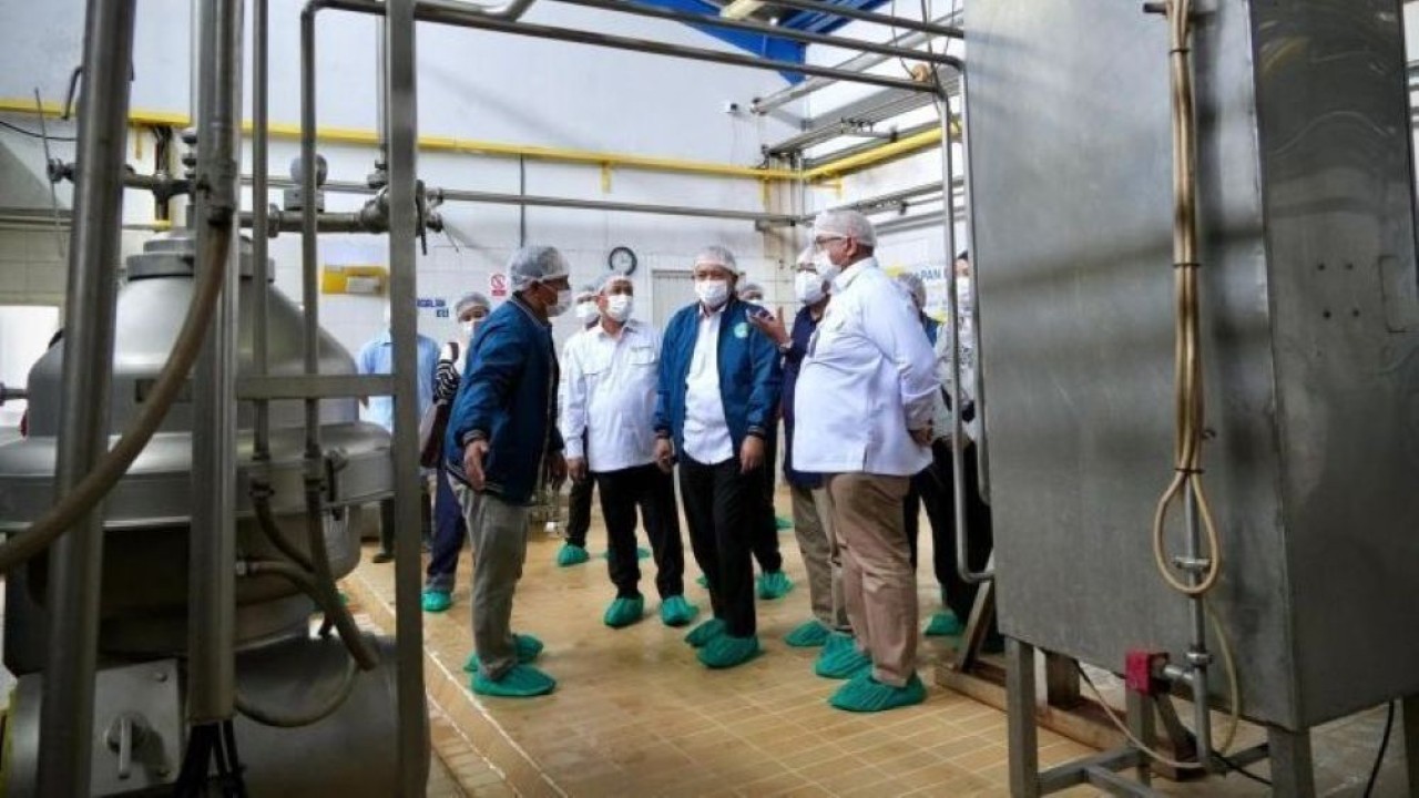 Menteri Koperasi Ferry Juliantono didampingi Sekretaris Kementerian Koperasi Ahmad Zabadi dan Direktur Utama LPDB Koperasi Krisdianto meninjau pabrik KPBS Pangalengan, Kabupaten Bandung, Jawa Barat, Senin, 22 Desember 2025. (Foto: ANTARA/HO-Humas LPDB)
