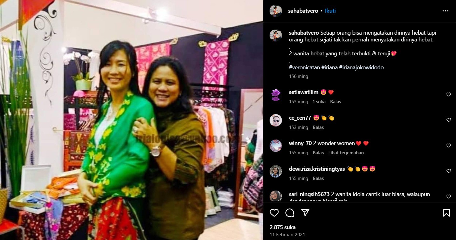 Bukti kedekatan mereka juga sempat diunggah disalah satu akun Instagram @sahabatvero. Dalam foto lawas tersebut, Veronica Tan dan Iriana Joko Widodo tampak berpelukan seraya tersenyum di hadapan kamera.