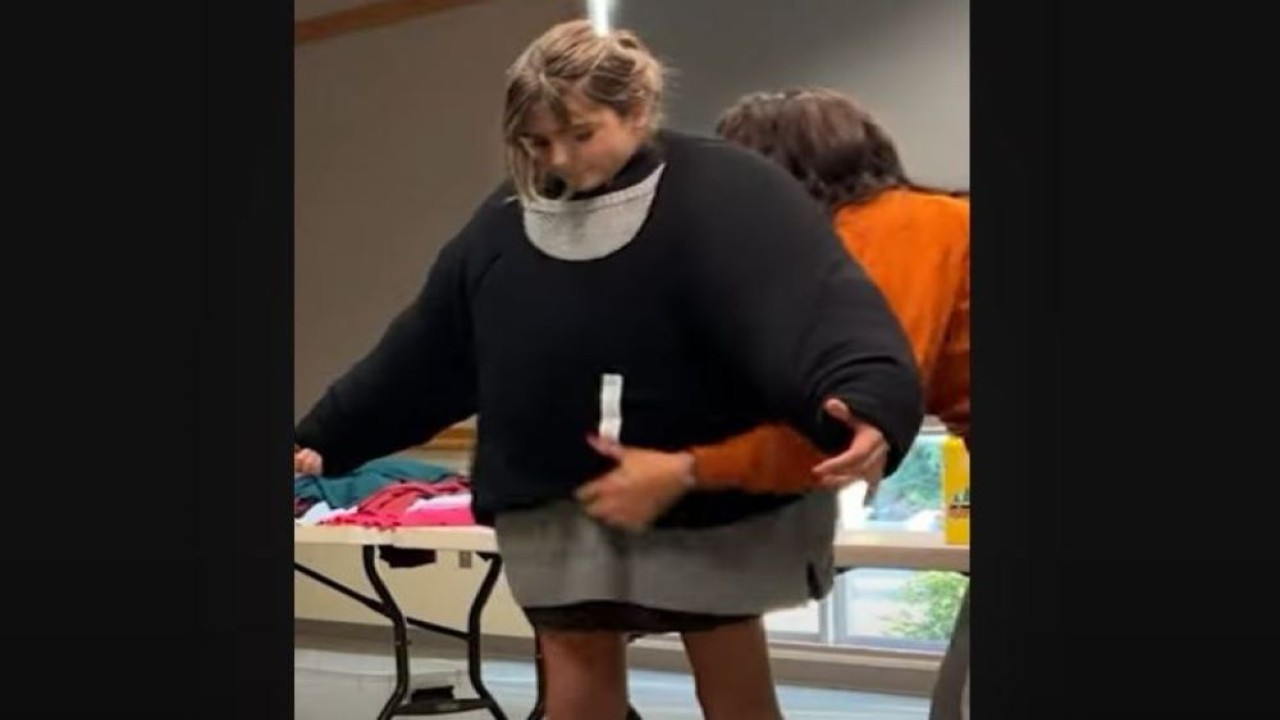 Perempuan bernama Sophia Hayden asal Washington, Amerika Serikat (AS), yang melakukan aksinya di sebuah perpustakaan itu, harus mengenakan sweater satu per satu.
