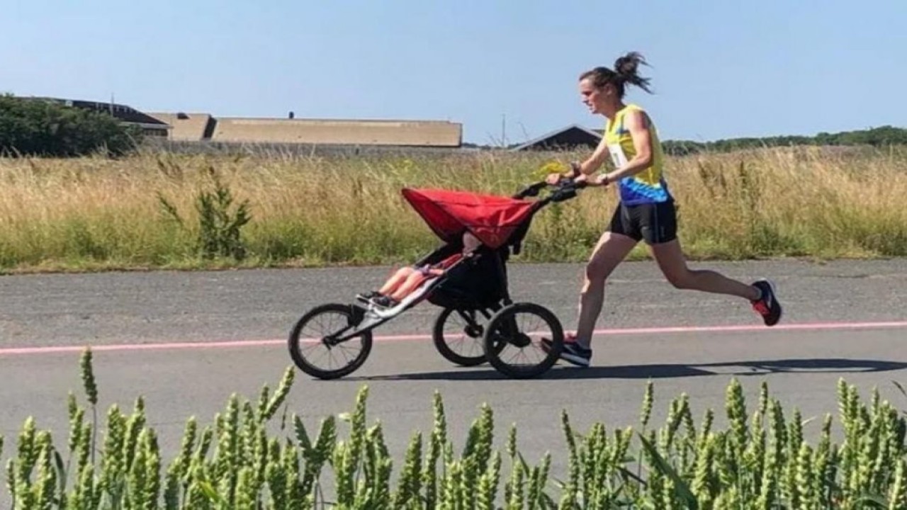 Ibu berusia 36 tahun itu berlari sambil mendorong putranya yang berusia 1 tahun dengan kereta bayi. Bahkan, luar biasanya, dia sanggup menyelesaikan lomba sejauh 6,2 mil (10k) dengan waktu pemecahan rekor 40 menit, 4 detik.