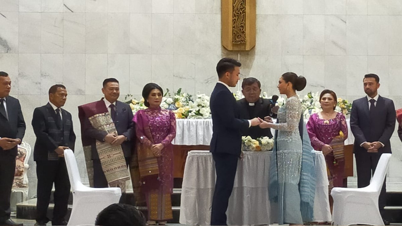 Setelah prosesi Mangain selesai, hari kebahagian Yakup dan Jessica dilanjutkan dengan acara Martumpol di lokasi HKBP Rawa Mangun, Sabtu (29/4/2023).