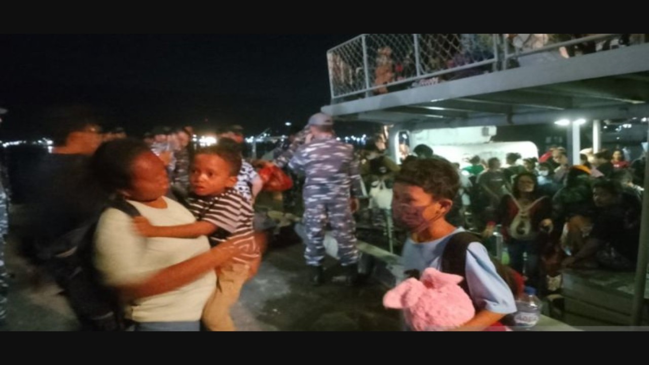 Nusantaratv.com - Sebanyak 327 pengungsi korban erupsi Gunung Ruang di Kabupaten Kepulauan Sitaro, Sulawesi Utara, tiba dengan selamat di dermaga Satrol Pangkalan Utama TNI Angkatan Laut (Lantamal) VIII, di Kota Bitung pada Sabtu (20/4) malam.