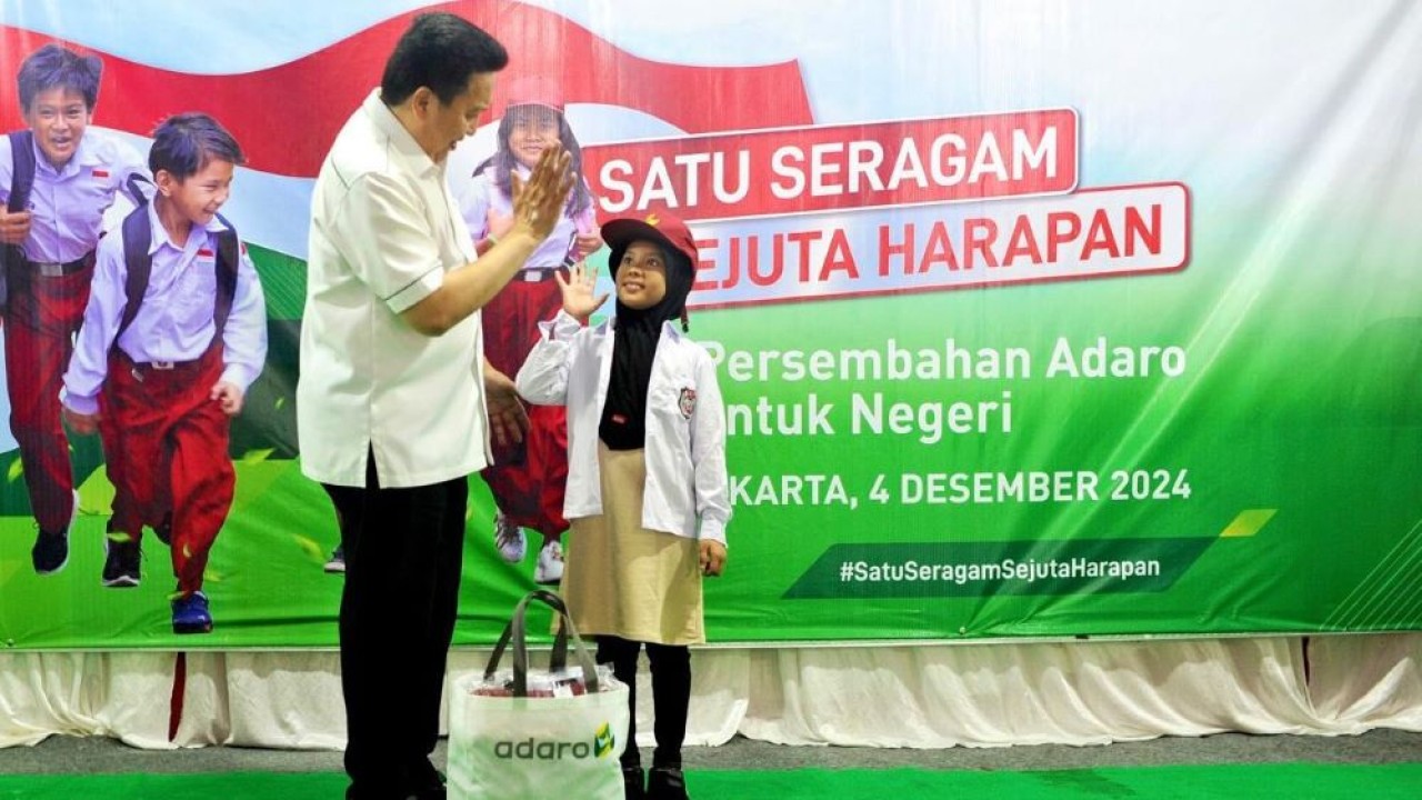 "Kami percaya bahwa pendidikan adalah kunci utama masa depan bangsa, sehingga kita harus bergandeng tangan mendukung program pemerintah dalam menciptakan akses pendidikan yang merata di Indonesia. Untuk itu, Adaro melaksanakan program 'Satu Seragam Sejuta Harapan' dengan membagikan paket seragam sekolah kepada para siswa SD dari keluarga prasejahtera di berbagai daerah sekitar wilayah operasional kami," ujar Presiden Direktur Adaro Group Garibaldi Thohir.