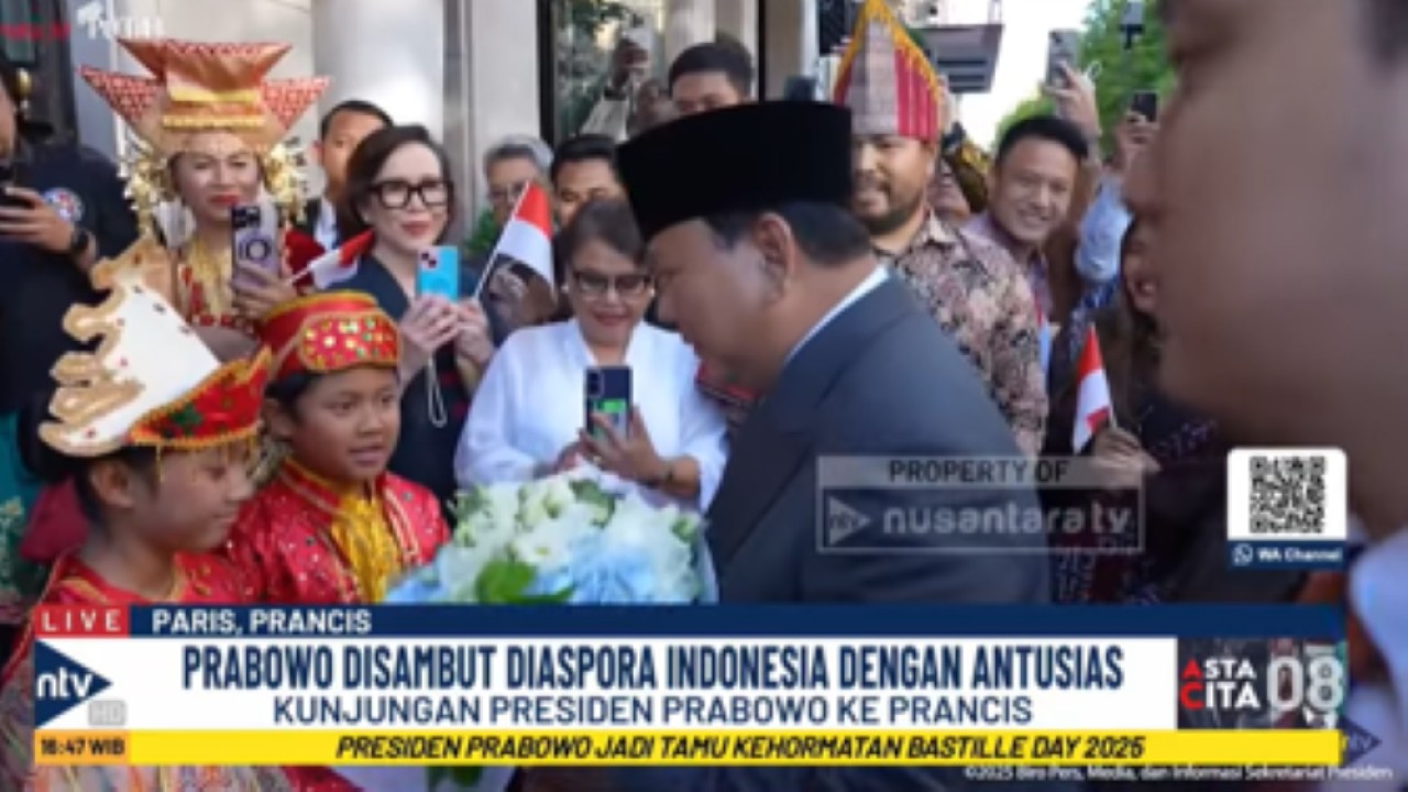Kebahagiaan yang sama juga diungkapkan dua anak diaspora RI di Prancis, Bella dan Ganendro yang memberikan buket bunga kepada Presiden Prabowo saat tiba di hotel.