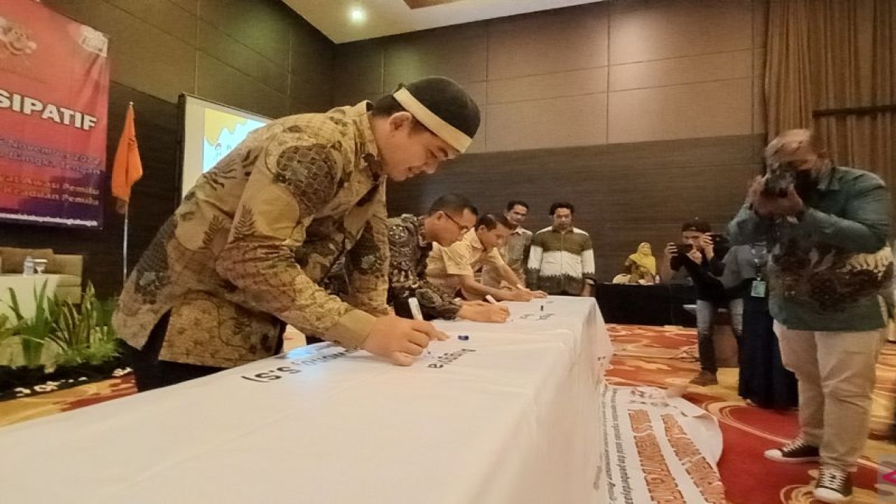 Nusantaratv.com - Badan Pengawas Pemilu (Bawaslu) Kabupaten Bangka Tengah, Provinsi Kepulauan Bangka Belitung, bersama sejumlah organisasi masyarakat mendeklarasikan pengawasan pemilu partisipatif untuk melahirkan pesta demokrasi yang berintegritas dan bermartabat.