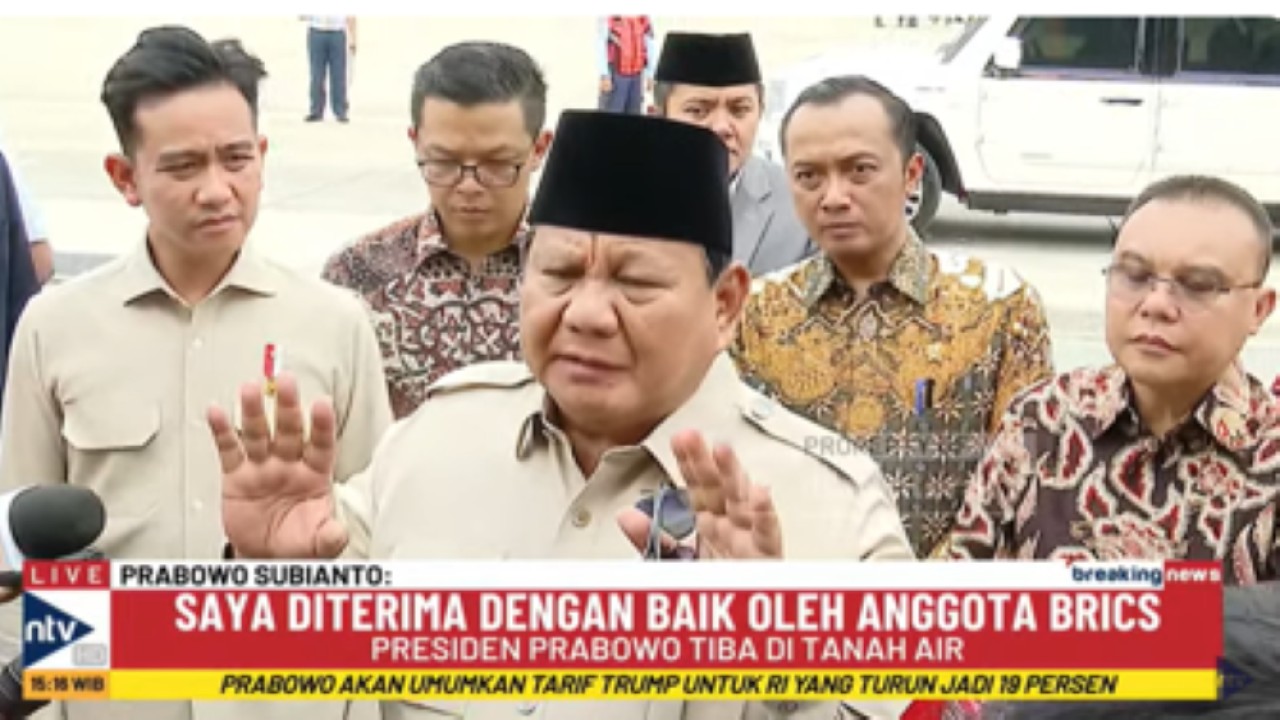 Nusantaratv.com-Setelah melakukan lawatan ke luar negeri selama kurang lebih dua pekan. Presiden Prabowo Subianto telah kembali ke Tanah Air pada Rabu (16/7/2025) melalui Bandara Halim Perdanakusuma.