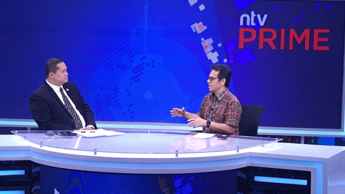Wakil Menteri Komunikasi dan Informatika Nezar Patria berbicara panjang lebar tentang dampak kemajuan AI terhadap industri media dan peran jurnalis bersama Presenter Donny De Keizer dalam program NTV Prime di Studio NusantaraTV, Jumat (23/2/2024).
