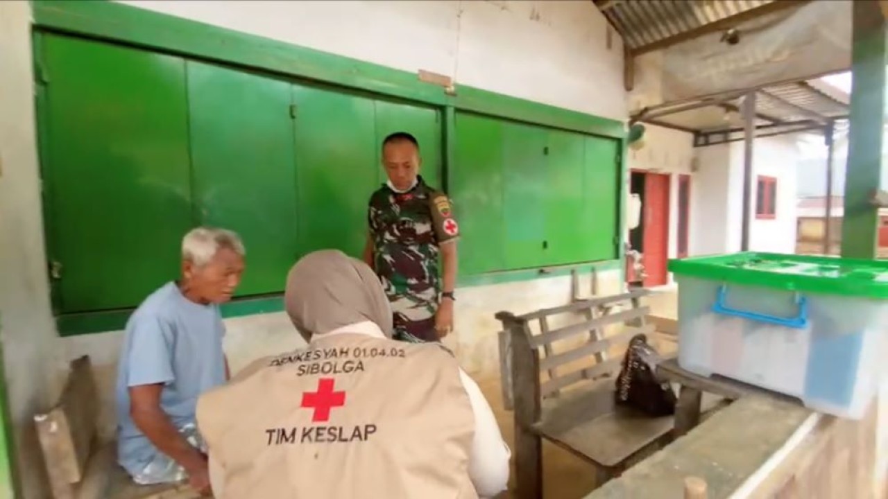Demikian pula di Kelurahan Pasar Tukka, Kecamatan Tukka, Tapanuli Tengah. Dengan mobil kesehatan warna hijau berlambang palang merah, dokter dan nakes TNI datang langsung ke rumah warga untuk mengecek kesehatan seorang lansia.