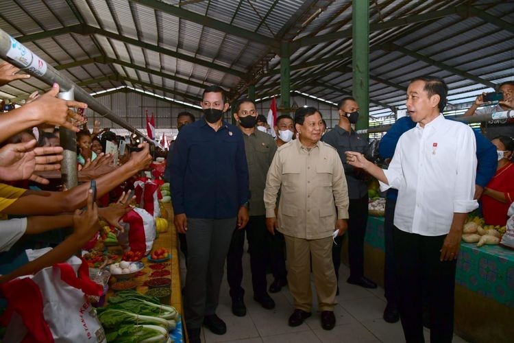 Jokowi dan Prabowo Subianto mengunjungi Pasar Langgur, Maluku Tenggara, Kamis (15/9/2022) pagi.(Sekretariat Presiden)