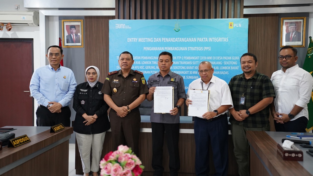 Rapat pendahuluan PT PLN (Persero) UIP Nusra dan Kejaksaan Tinggi NTB ini ditutup dengan penandatanganan pakta integritas untuk proyek PLTMG Sumbawa-2 Pembangkit 30 MW, PLTU Lombok FTP-2 Pembangkit 2x50 MW, dan SUTT 150 kV Jeranjang-Sekotong.