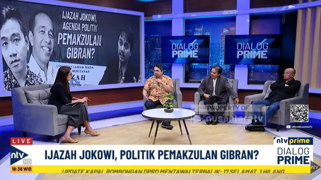 Perbincangan ini mengangkat topik "Ijazah Jokowi, Politik Pemakzulan Gibran" dan dapat disimak melalui video di bawah ini.