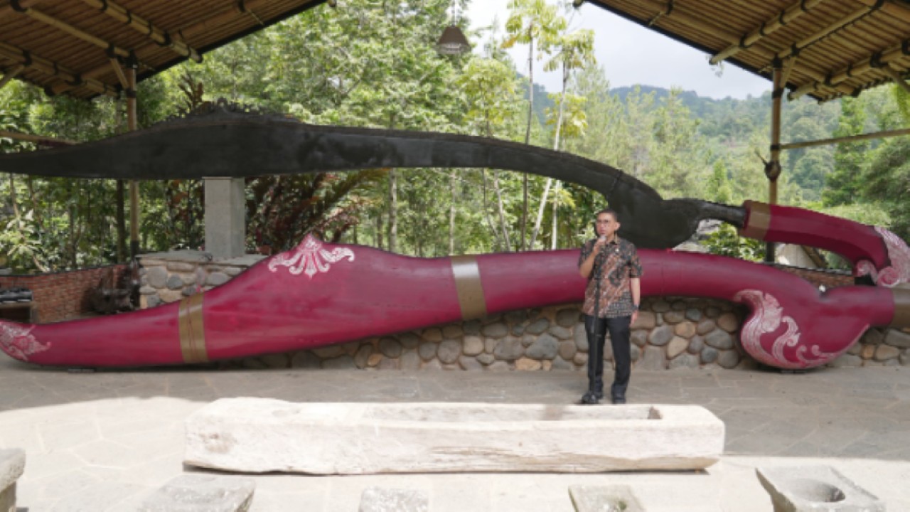 "Kujang yang tertua dari abad ke sembilan. Kita sudah melakukan studi bagaimana formasi dan deformasi dari kujang sejak periode-periode awal. Dan varian-varian kujang dari berbagai kesultanan di Jawa, khususnya Jawa Barat kemudian dikumpulkan menjadi sebuah koleksi di Gedung Pusaka yang sekarang kita mau resmikan sebagai Museum Kujang," ujar Fadli Zon saat meresmikan Museum Kujang Pusaka, Kampung Budaya Sunda Paseban, Kabupaten Bogor, Rabu, 27 November 2024.