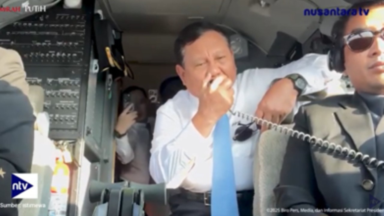 "Tiger one, zero on, ini Indonesia One. Saya Prabowo Subianto Presiden Republik Indonesia," kata Prabowo Subianto menggunakan bahasa Inggris.