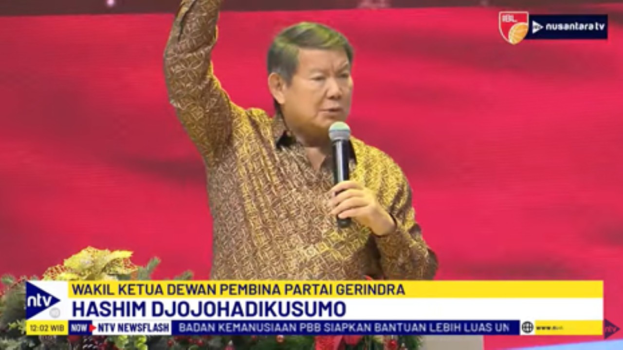Nusantaratv.com-Wakil Ketua Dewan Pembina Partai Gerindra, Hashim Djojohadikusumo menghadiri acara Natal Nasional Gerindra 2024 di Gereja Tiberias Bekasi, Jawa Barat.