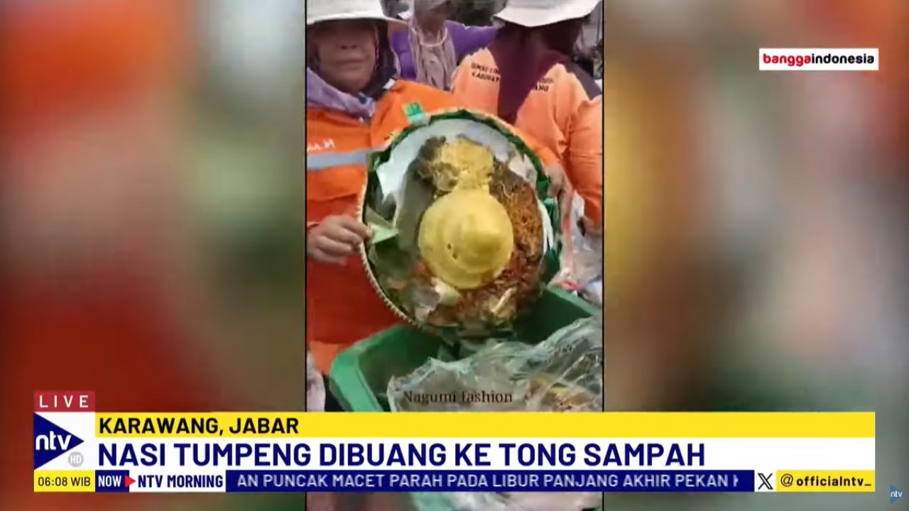 Video amatir milik warga terkait pembuangan nasi tumpeng di Karawang, Jawa Barat, pada Sabtu (14/9/2024), menjadi viral di media sosial.