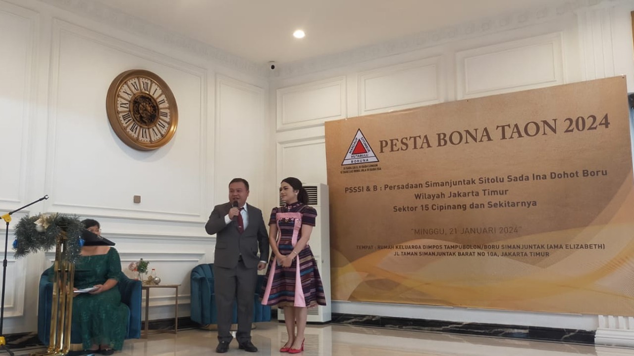 "Hari ini kami melaksanakan acara Bonataon Parsadaan Simanjuntak Sitolu Sada Ina Dohot Boru Wilayah Jakarta Timur Sektor 15 Cipinang Sekitarnya semacam syukuran awal tahun yang biasa orang Batak selenggarakan untuk membuka membuka tahun. Tanda sebagai ucapan syukur kalau di tahun yang lalu kita sudah diberkati, sudah melewati tahun sebelumnya. Jadi kita buka tahun 2024 ini dengan acara syukuran di rumah Bapak Dimpos Tampubolon istrinya Boru Simanjuntak," tutur Rivai Simanjuntak.
