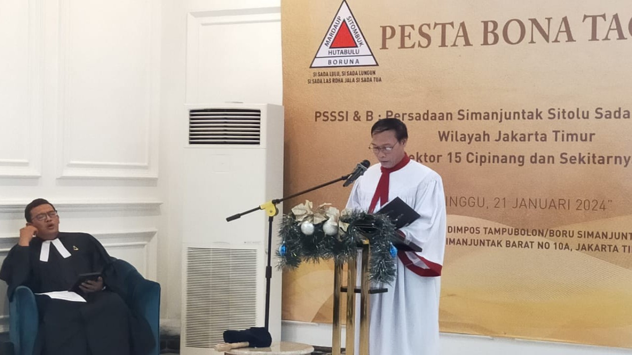 "Dimana tahun 2024 bagi komunitas Parsadaan Simanjuntak Sitolu Sada Ina Dohot Boru Wilayah Jakarta Timur Sektor 15 Cipinang dan Sekitarnya ini mengingat bahwa mereka telah ditolong Tuhan. Dan tahun ini pun semakin ditolong Tuhan," ujar Pendeta.