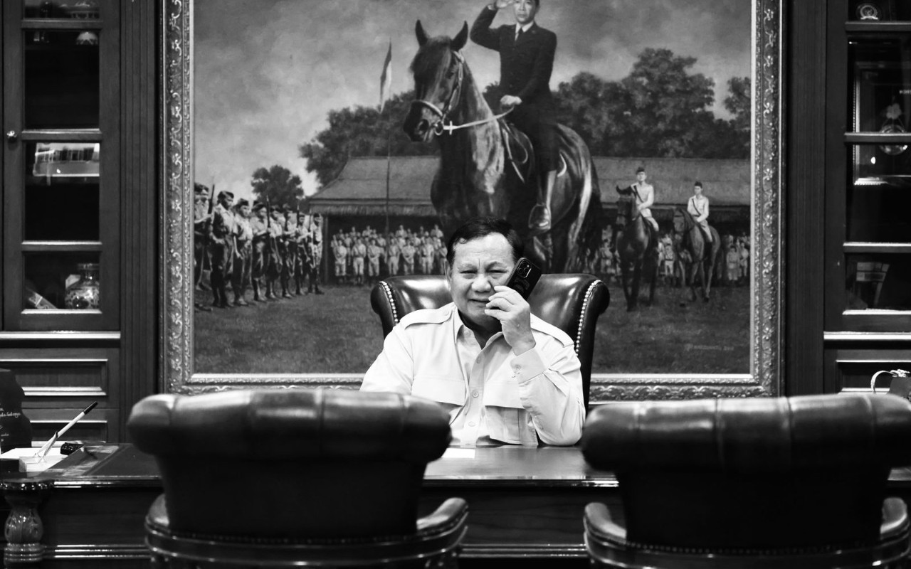 Prabowo menerima telepon dari MBZ di ruangan kerjanya usai beraktivitas seharian di Kementerian Pertahanan.