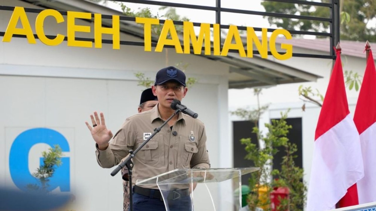 Nusantaratv.com - Menteri Koordinator Bidang Infrastruktur dan Pembangunan Kewilayahan, Agus Harimurti Yudhoyono (AHY), meresmikan Hunian Sementara (Huntara) bagi warga terdampak bencana hidrometeorologi di Kabupaten Aceh Tamiang, Kamis, 22 Januari 2026.