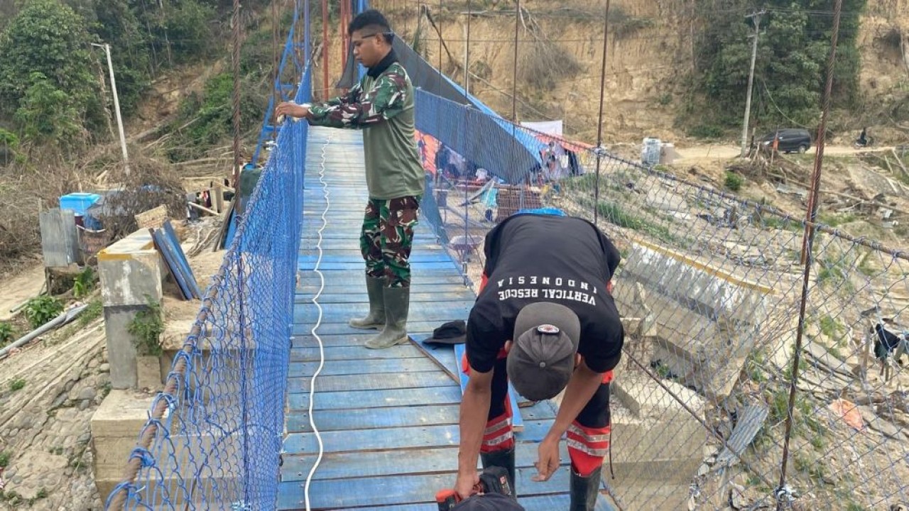 TNI Angkatan Darat terus mempercepat pembangunan jembatan gantung agar akses masyarakat segera terbuka pascabencana akhir November lalu.