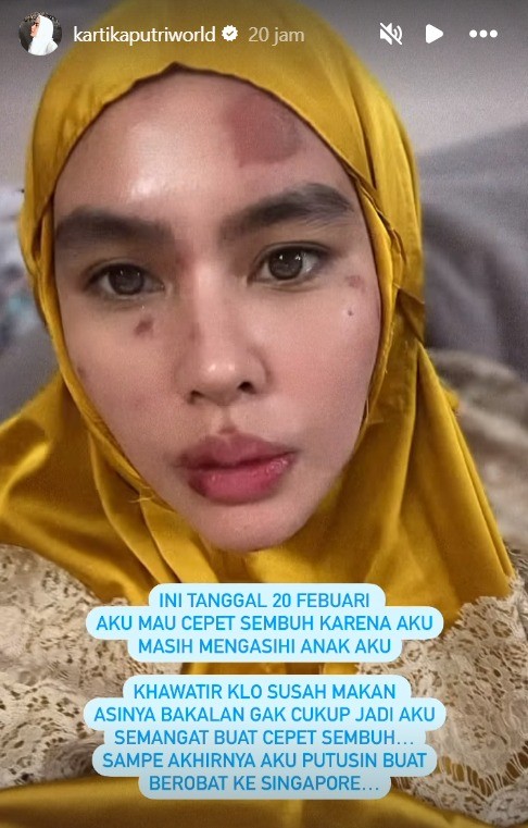 Dilansir nusantaratv.com melalui story Instagram @kartikaputriworld, Ia mengatakan bahwa dirinya mengalami kelainan kulit yang membuat wajahnya melepuh dan mulutnya ruam yang disebabkan oleh penyakit autoimun yang sudah lama dideritanya.