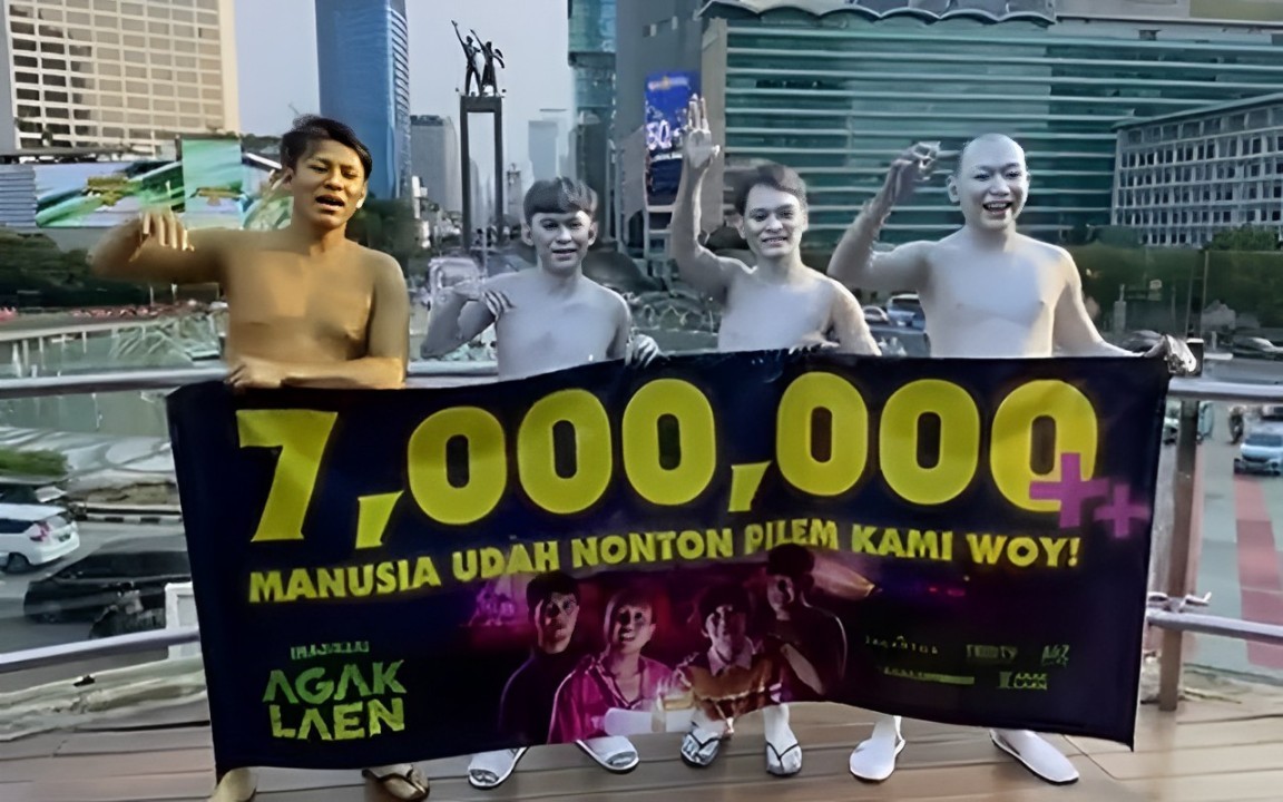 "Ini nazar kami 7 juta penonton. Kami sudah menunaikan nazar ini. Bundaran HI guys," ujar Indra Jegel melalui akun Instagram @pilem.agak.laen.