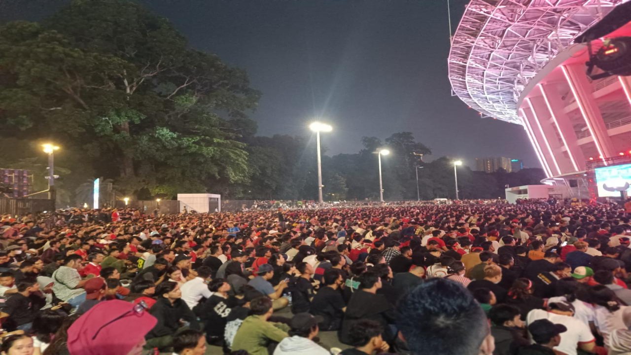 Nusantaratv.com - Ribuan warga memenuhi acara nonton bareng (nobar) PSSI yang diadakan di Stadion Utama Gelora Bung Karno, pada Senin, (29/4/2024).
