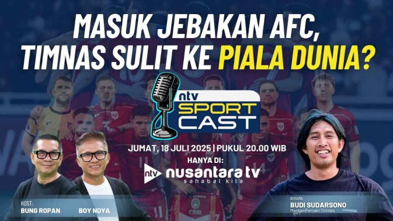 Berikut rundown program Sportcast di Nusantara TV edisi Jumat 18 Juli 2025 tayang mulai pukul 20.00 WIB: