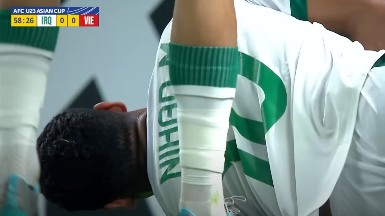 Nihad kemudian terjatuh. Dalam tayangan ulang terlihat sentuhan kecil dari kiper Vietnam. Wasit kemudian menunjuk titik putih setelah mempertimbangkan masukan dari VAR. Ali Jasim yang maju sebagai algojo kemudian berhasil mencetak gol dan membawa Irak unggul 1-0 hingga babak pertama usai.